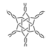 The first example is a traditional spider. Note that leading/trailing twists in the initial stitch cause crossed legs in the pair diagram of the first droste step. Assigning just twists to these stitches nicely separates the legs into twisted pairs. Due to the nature of the droste effect, that effect repeats in the second droste step.